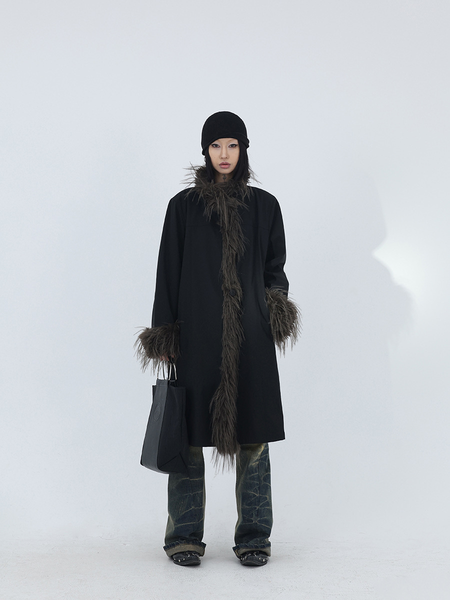 Street Fashion Color Contrast Patchwork Stand Collar Loose Jacket Men