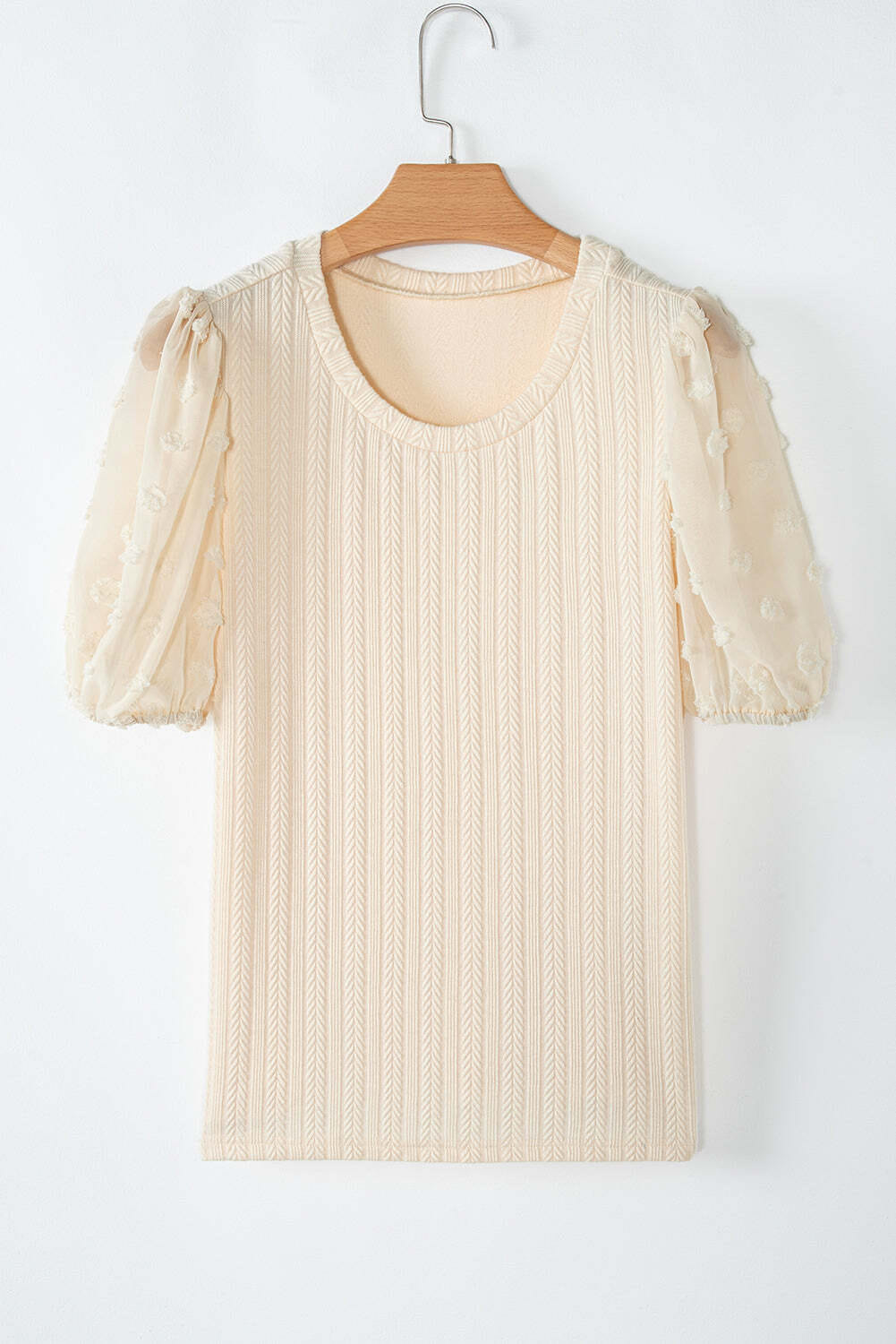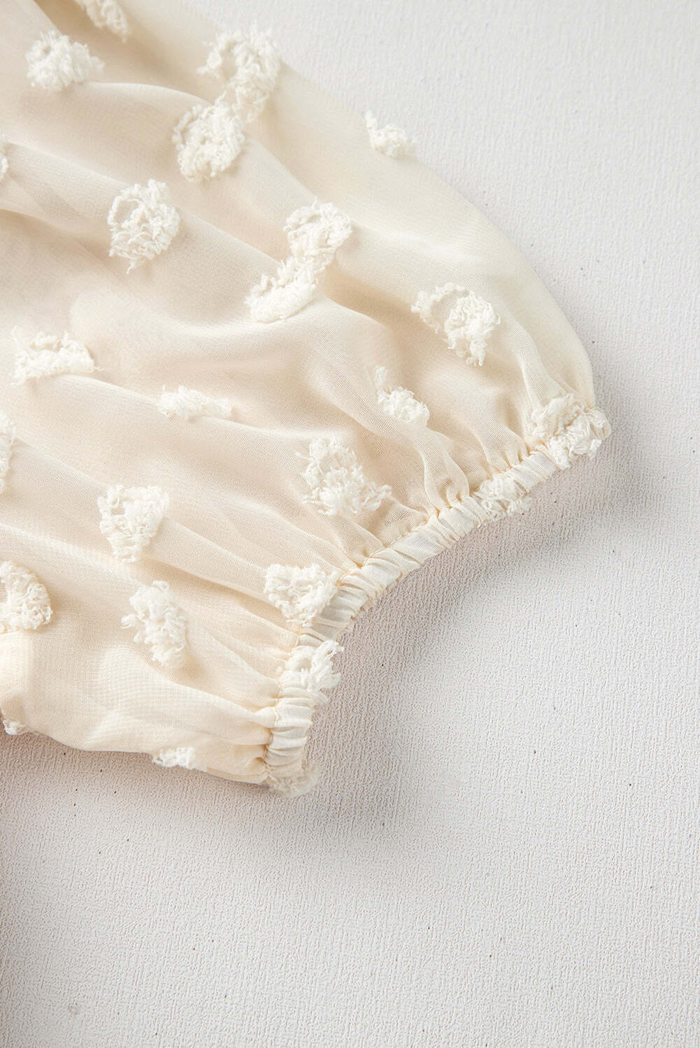Be the first to review “Apricot Polka Dot Mesh Puff Sleeve Textured Blouse”
