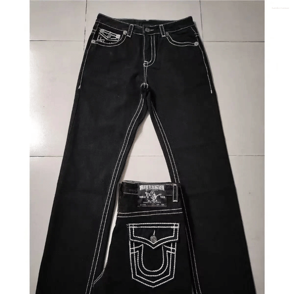 Color: A19 – Size: S – Men's Jeans American Harajuku Women's Blue Retro Rhinestone Pattern High Street Straight Y2k Cargo Pants Women