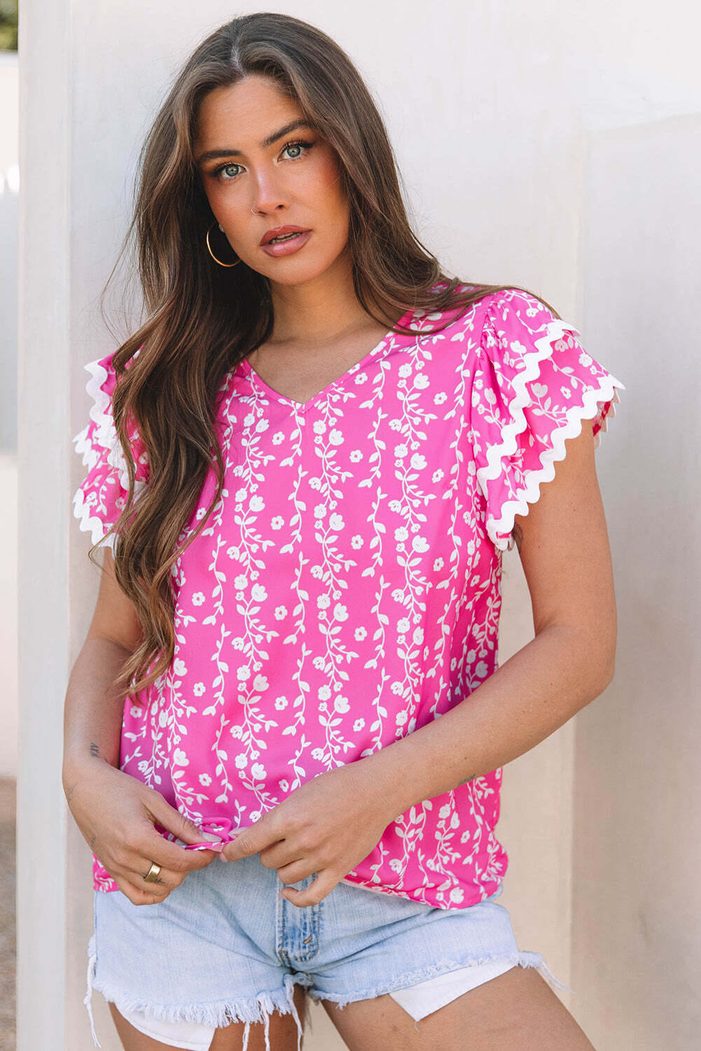 - The blouse is adorned with a beautiful floral print that’s graceful and charming.